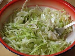Cogemos un repollo blanco, le quitamos los troncos de las hojas y lo picamos en juliana. Agregamos un ajo machacado con pimiento rojo, un poco de pimienta negra, aceite,sal y vinagre.